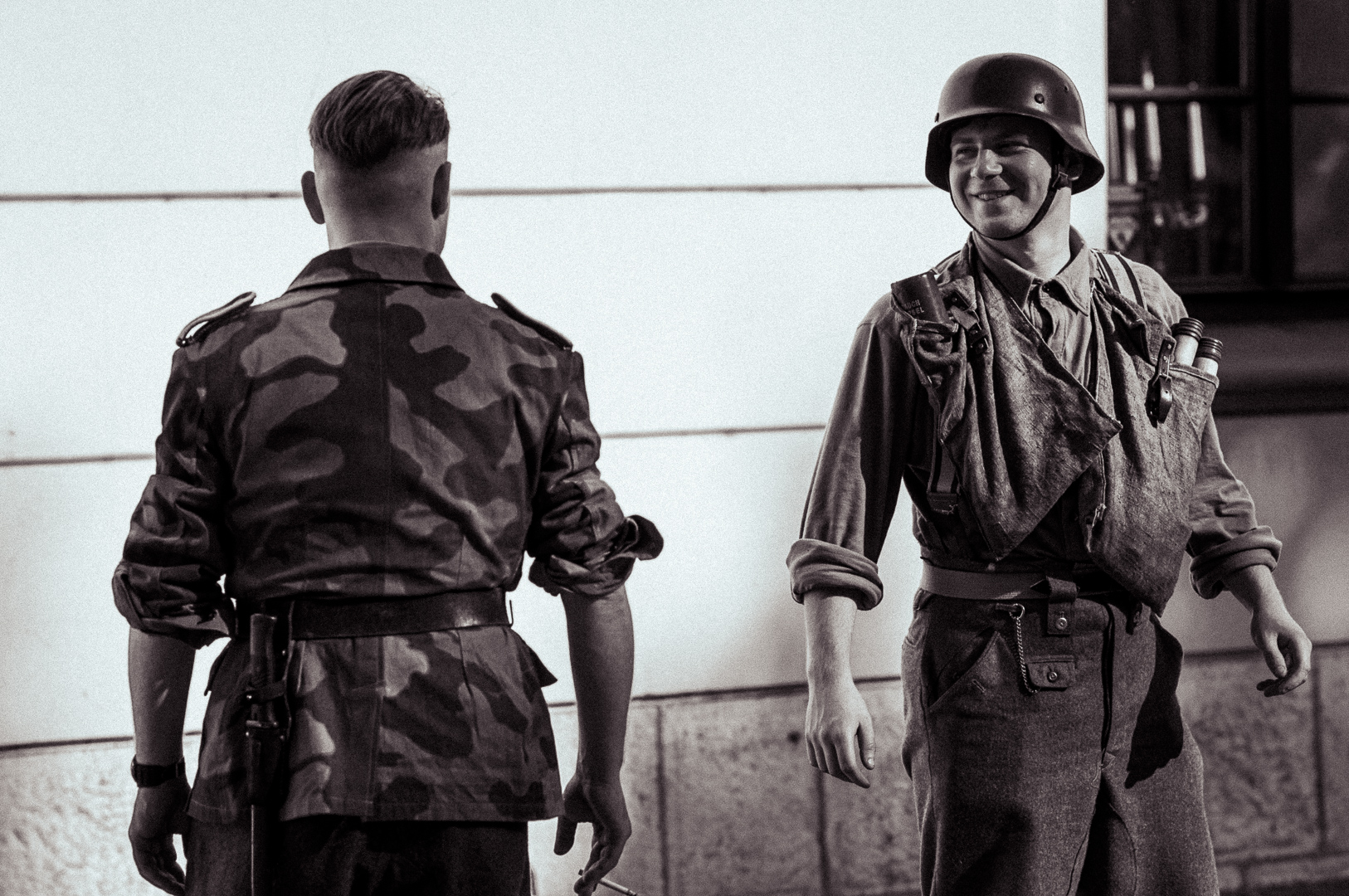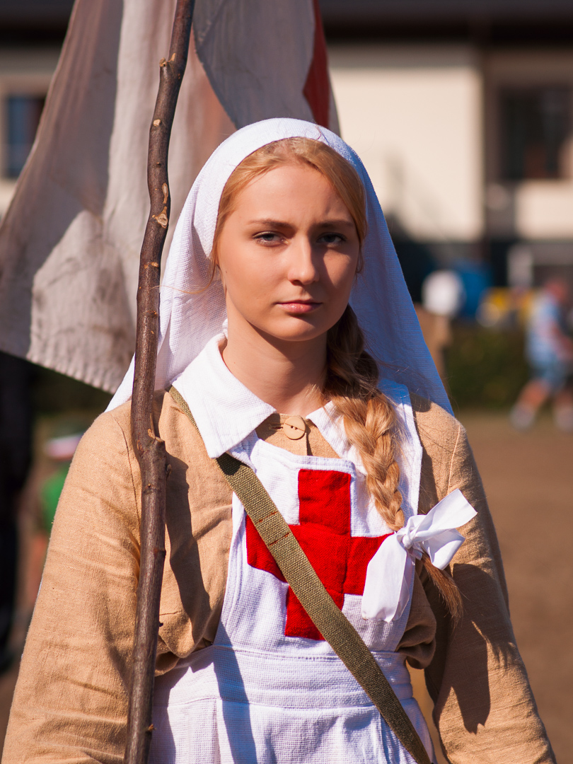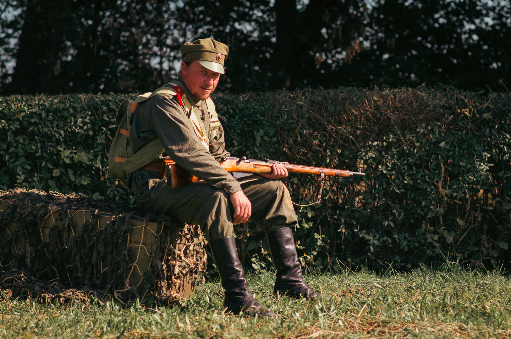 To właśnie na Polach Chwały stawiałem pierwsze kroki w portrecie i generalnie w fotografowaniu nieznajomych. Wcześniej miałem zwyczajnie aparat. Robiłem zdjęcia temu co popadnie, chociaż ludzie jako temat zawsze wydawali mi się najbardziej ciekawi. Początki były trudne, bo jak to tak do kogoś podejść i po prostu zrobić mu zdjęcie? Grupy rekonstrukcji historycznej mi to ułatwiły. Założyłem, że jak ktoś się „przebiera” to musi liczyć się z uwiecznieniem na fotografii. Przełamałem się. Rychło okazało się również, że to najczęsciej świetni ludzie, a po zdjęciach dodatkowo można porozmawiać o życiu, wszechświecie i całej reszcie. Czy zdarzali się niechętni zdjęciom? Bardzo rzadko. Zazwyczaj i tak udawało się coś pstryknąć tylko można było usłyszeć wymruczane pod nosem „przydałoby się jakieś piwo”. Zawsze ciepło myślę o grupach rekonstrukcyjnych odkąd zacząłem robić im zdjęcia, a same Pola Chwały zasłużyły na osobny wpis. Dzięki!